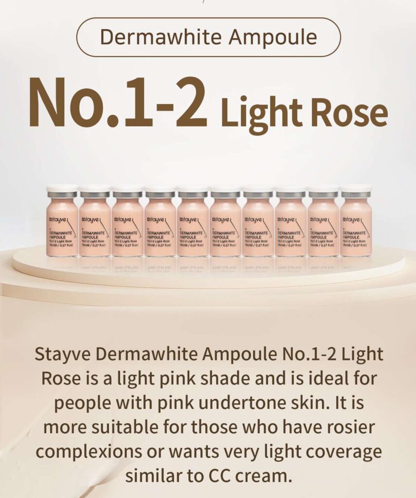 BB Glow Stayve No. 1-2 Light Rose – this is a light shade which ideal for people with light skin tones with pink undertones. It is suitable for those with rosier complexion.The BB Glow Stayve Dermawhite serum has been designed to safely and intensively whiten your skin. It is suitable for all skin types and tones. It helps reduce the freckle appearance and discoloration of the skin that is caused by photo-ageing and acne. Ampoules contain added foundation, combined with niacinamide and peptide for effective brightening and anti-ageing process. They allow instant hydration of the skin, leaving the skin feeling soft and plump. This treatment is perfect for dry, sun-damaged skin, pigmented and uneven skin tones, tired and sensitive skin requiring intense moisture.The BB Glow serum is penetrated under the skin using a micro-needling device with 0.25mm to 1mm needles. After penetration, BB cream ampoules injected into the skin will blend and adjust to clients skin tone.